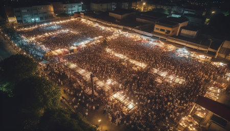 Glowing city skyline, bustling night market celebration generated by artificial intelligence