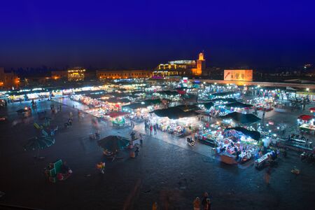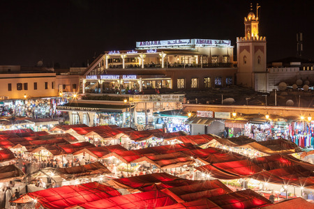 Night view of Djemaa el Fna, a square and market place in Marrakesh's medina quarter