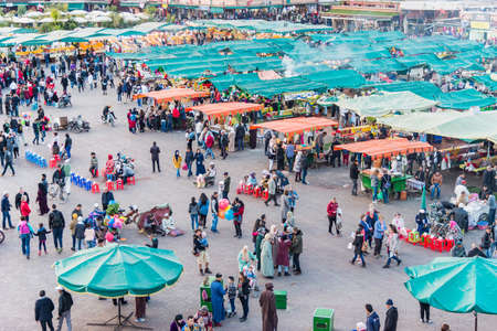 MARRAKECH, MOROCCO - FEBRUARY 22, 2016: Jemaa el Fna (also Jemaa el-Fnaa, Djema el-Fna or Djemaa el-Fnaa) is a square and market place in Marrakesh's medina quarter.