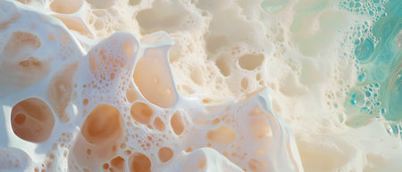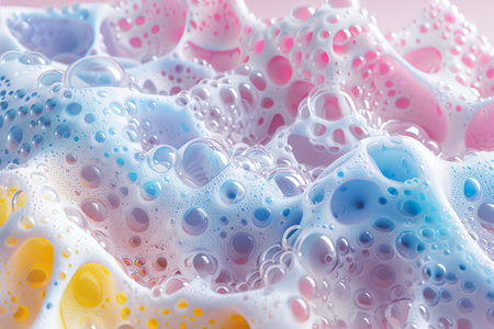 Vibrant and colorful foam with bubbles creates an abstract visual experience. Ideal for projects focused on cleanliness, freshness, and artistic design.