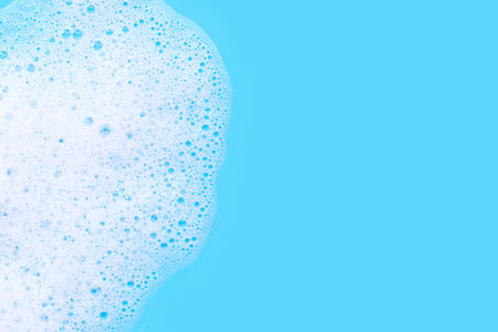 Foam on blue background. Top view