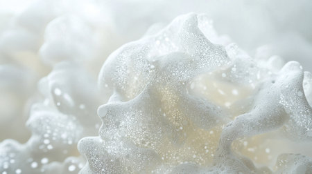 White background with foam and bubbles, seamless texture. White soap foam pattern on white background. Closeup of soapy water or shampoo in a washing machine for a design template. Vector illustration, close-up shot, 4K resolution, ultra-realistic, high detail, stock photography. --ar 3:2 --v 6.1 Job ID: badb07d8-f419-4b1f-aeb4-d40611b14f4e