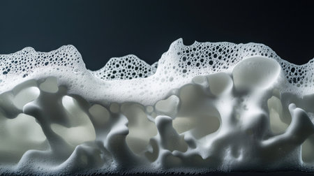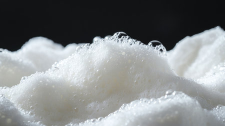 Captivating close-up of white bubbles and foam against a dark background. This image highlights textures and contrasts, perfect for showcasing freshness.