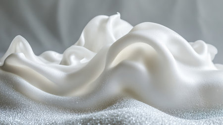 White foam delicately draped over a metallic object on a gray background
