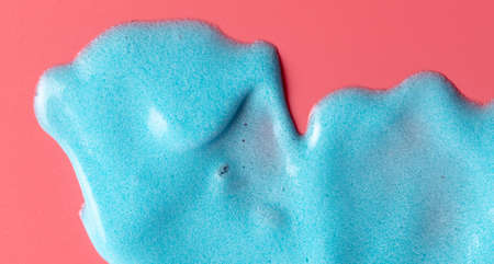 Blue slime isolated on pink background. Jelly-like material for children to play