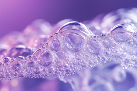 Captivating close-up of soft bubbles and foam on a dark background, showcasing the beauty and texture of water in an abstract manner. Perfect for projects related to cleanliness and freshness.