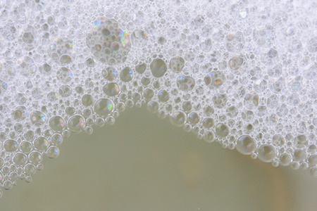 Thick detergent bubbles floating over water surface, reflecting vibrant colors. Clean look, natural light enhances the sparkle