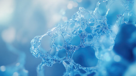 A captivating close-up view of transparent soap bubbles showcasing intricate patterns and reflections. This image conveys beauty and purity with a blue abstract background.