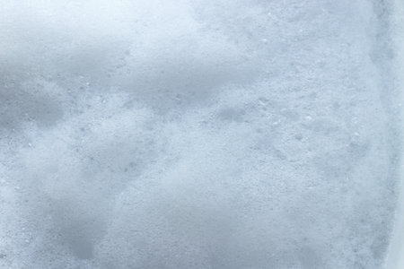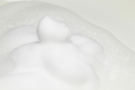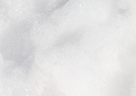 Foam background. Liquid soap bubbles, Froth bubbles backdrop. Soap foam popping bubble, white backdrop. Soap sud macro structure close-up. Clean, cleaning, washing, laundry