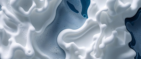 A captivating display of foamy waves with bubbles and splashes, the dynamic nature of liquid movement. the interplay of white and blue hues creates a fresh, clean, and energetic atmosphere. Generative AI