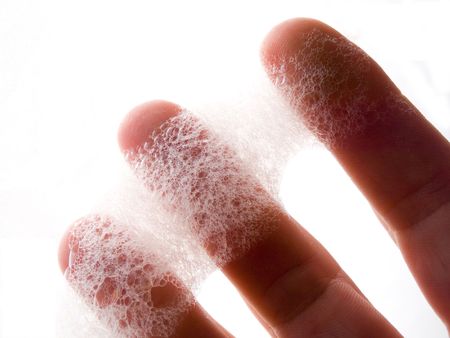 The baby's soap hands on a light background.Clean hand concept idea. Health care Coronavirus protection.