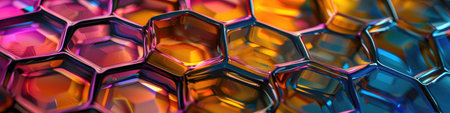Background of hexagons illuminated by colored light.