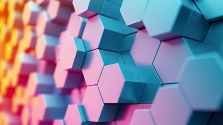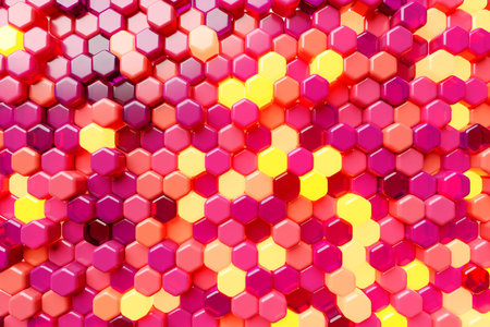Colorful hexagon blocks shine glossy abstract background. 3d render illustration