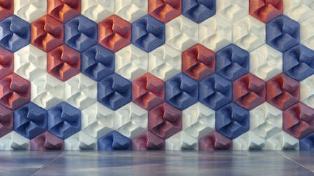 Pattern of simple geometric hexagonal shapes, mosaic background. 3d illustration
