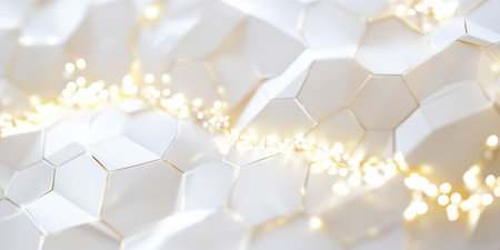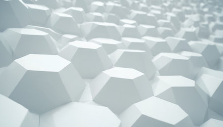 A sleek, futuristic surface featuring layered hexagonal motifs in grayscale, enhanced by dynamic lighting that highlights depth and intricate geometric interplay.