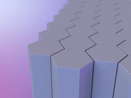 abstract 3d illustration of geometric composition,digital art works. 3d illustration of a floor of regularly-spaced hexagonal columns