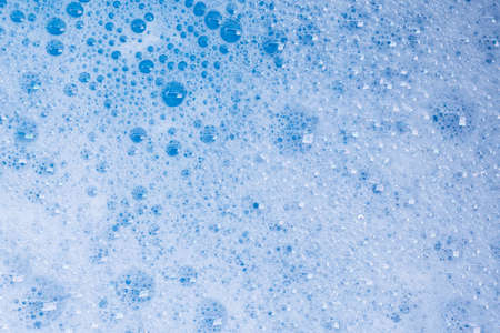 Soap foam close-up. Background from soapy bubbles of shampoo in blue color