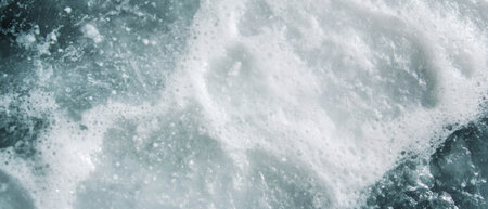 Layer of soapy foam bubbles on water, creating a clean and fresh feel with light emphasizing the soft texture