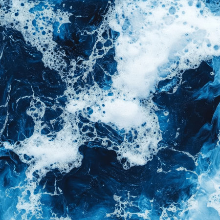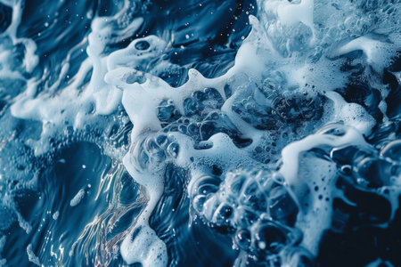 Vibrant abstract pattern featuring shades of blue and white, resembling water with bubbles and foam. fluidity and texture create calming and refreshing visual experience