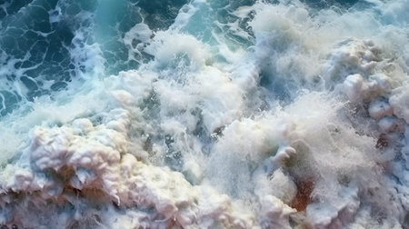 Powerful ocean waves creating foamy textures along the shoreline