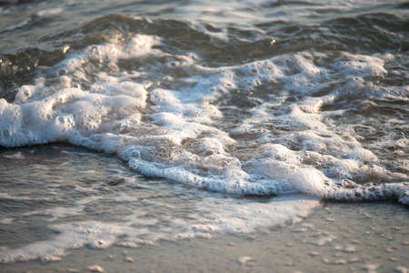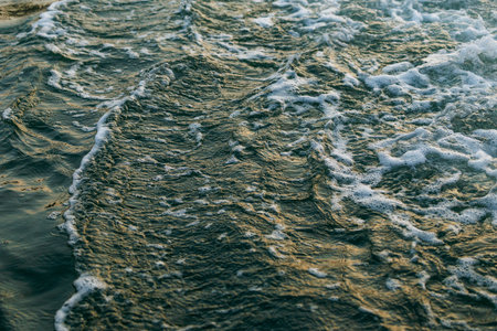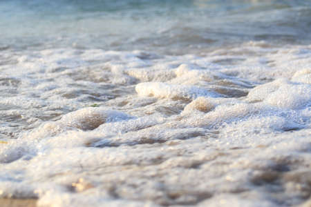 Ocean Nature image of close-up details as foamy water as waves wash up on shore at the beach