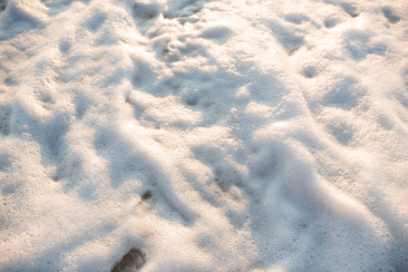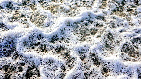Layer of soapy foam bubbles on water, creating a clean and fresh feel with light emphasizing the soft texture