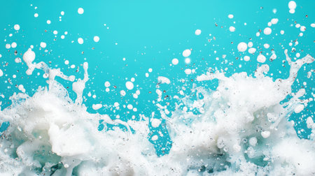 A vibrant image capturing a dynamic ocean wave splash, featuring bubbles and foam against a teal background. This lively scene evokes energy and freshness.