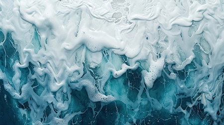 Vibrant abstract pattern featuring shades of blue and white, resembling water with bubbles and foam. fluidity and texture create calming and refreshing visual experience