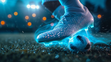 Soccer football player in action on the field with bokeh background
