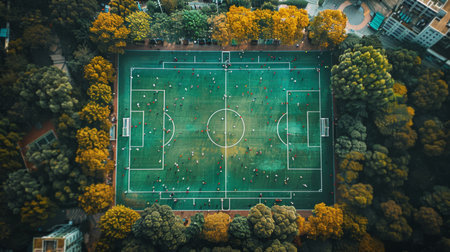 Aerial view of a football court. Generative AI