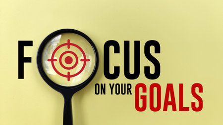 Focus on your goal typography with magnifying glass on yellow background. motivational quote. focus concept