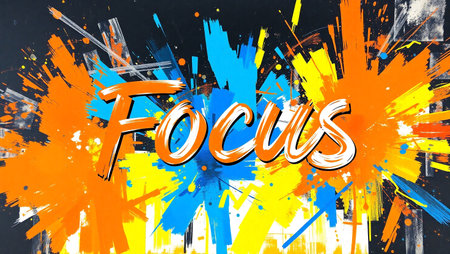 Focus word on colorful paint splashes background. Motivation and inspiration concept.