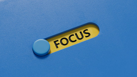 slide switch with FOCUS business word.close up of slide switch,Business Concept.3D rendering on blue background.