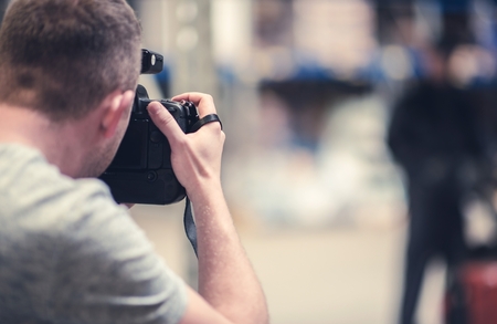 LOS ANGELES, UNITED STATES - Jun 03, 2019: Male cameraman filming video during an interview.