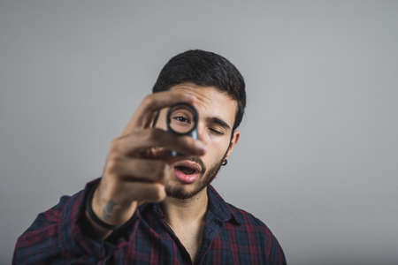 Focus and analysis concepts with person hand and magnifying.education or Learn