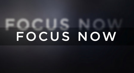 FOCUS NOW text on a dark background, 3D rendering