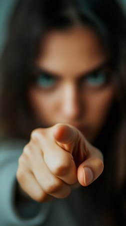 Young woman gesturing accusingly, expressing intense emotional strain, revealing workplace tension and personal frustration during high pressure professional environment