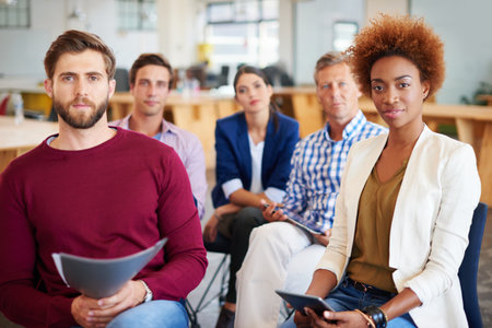 The business world better be ready for us. Portrait of a group of businesspeople standing in an office.