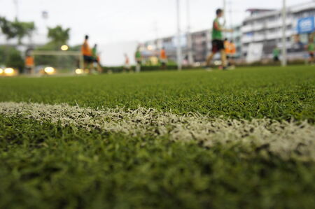 Artificial grass and line texture in soccer field.