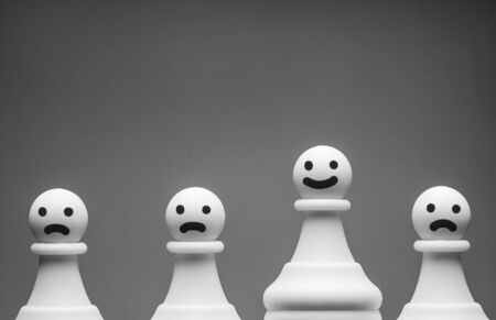 The lowest chess piece in game rank pawn. Tactics and Leadership concept.