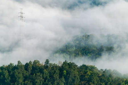 Misty forest,Fog and pine forest in the winter tropical forest,Fog and pine