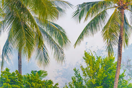 Tropical natural palm trees with cloudy misty smoky background on Koh Samui in Thailand.