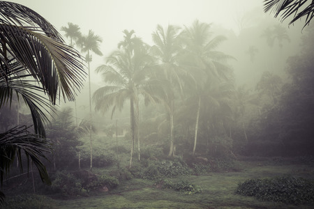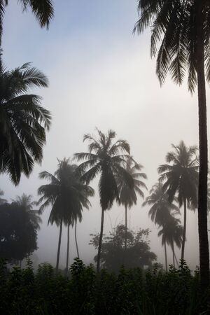 Misty view of coconut grove South Goa, India