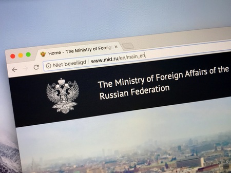 Amsterdam, the Netherlands - September 3, 2018: Official English website or The Ministry of Foreign Affairs of the Russian Federation