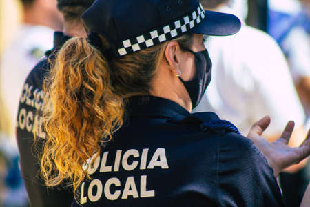 Seville Spain September 22, 2021 Police car patrolling in the streets of Seville during the coronavirus outbreak hitting Spain, wearing a mask in the street is not mandatory
