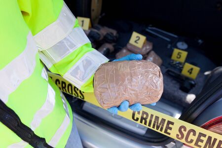 DUI or Manhunt Police Checkpoint on a Highway. Police Cruisers Close Up.