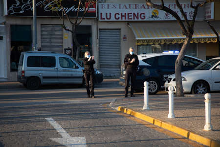 Seville Spain September 28, 2021 Police car patrolling in the streets of Seville during the coronavirus outbreak hitting Spain, wearing a mask in the street is not mandatory