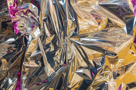 Abstract crumpled colorful aluminum foil texture close up modern background big size instant stock photography prints