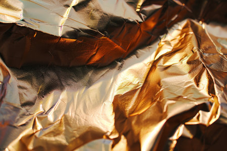 Crumpled foil is reflecting light, creating an abstract metallic background
