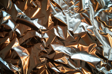 Crinkled metallic foil with reflective surface and textures. Generative AI illustration